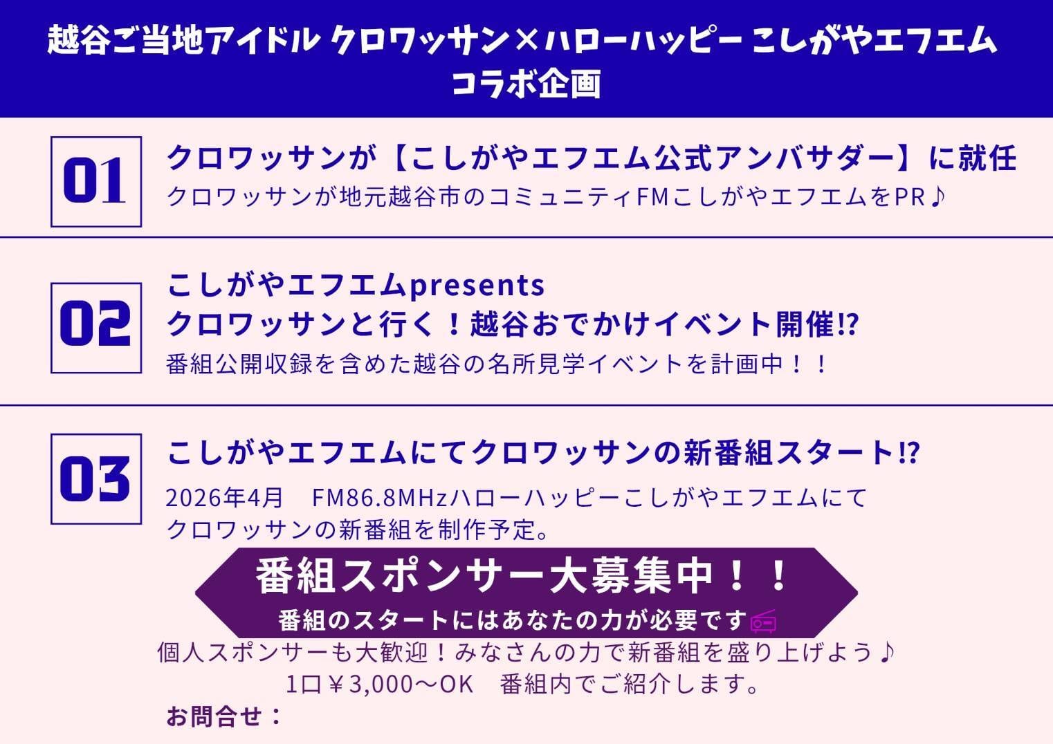 こしがやエフエムでのクロワッサン番組スポンサーシップです。